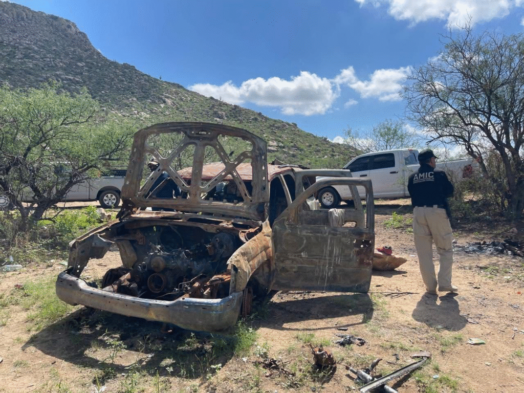 Integrantes del colectivo Madres Buscadoras de Sonora informaron sobre el hallazgo de al menos seis camionetas totalmente calcinadas y dos cuerpos en avanzado estado de carbonización en la sierra sonorense. El descubrimiento ocurrió este sábado en predios del Cerro del Chile, ubicados entre los municipios de Sáric y El Sásabe,