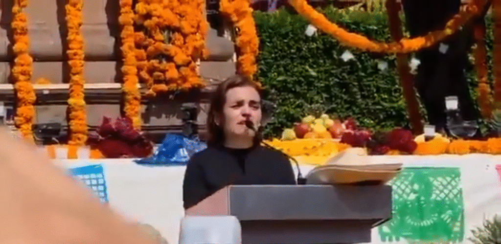 Grecia Quiroz García, esposa del alcalde de Uruapan, Carlos Manzo, rindió un emotivo homenaje durante la ceremonia realizada en la plaza principal del municipio. Durante su discurso, Grecia recordó también la cercanía que Carlos tenía con la ciudadanía: “Él llegaba de madrugada tan contento de sus operativos porque sentía que estaba haciendo muchas