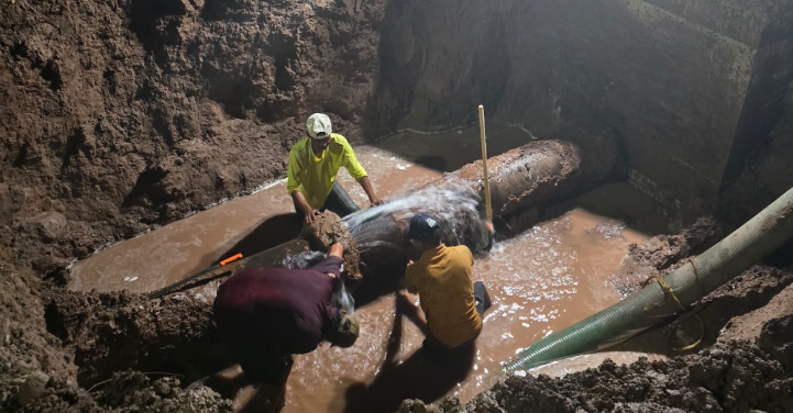 馃毀El organismo del OOMAPASC realiz贸 trabajos de relleno y compactaci贸n este 31 de octubre en la zona de excavaci贸n ubicada por la calle N谩inari y Coahuila para reparar la l铆nea de agua de 16 pulgadas馃毀