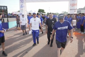 Durante el trayecto, los participantes fueron rociados con polvos de colores, disfrutaron de música, animación y un ambiente de convivencia que reflejó el espíritu potro y la alegría de la comunidad universitaria.