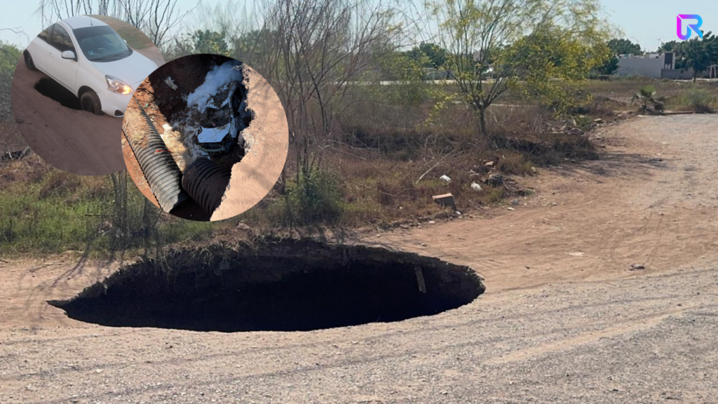 Conductor logra salir de su vehículo antes de que fuera tragado por socavón en Ciudad Obregón