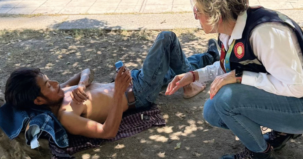 Hermosillo, Sonora; 2 de agosto de 2025.- Personal de Protección Civil continúa con los recorridos de apoyo por la ciudad ante los pronósticos de altas temperaturas que marcaron 45 grados centígrados, mediante la entrega de agua y suero a personas en situación vulnerable.