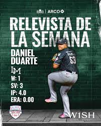 Duarte logró colgar ceros en todas sus últimas salidas, desempeño que lo colocó como el brazo más efectivo del bullpen durante el periodo evaluado. Su consistencia y dominio sobre la loma fueron determinantes para que la liga le otorgara esta distinción.