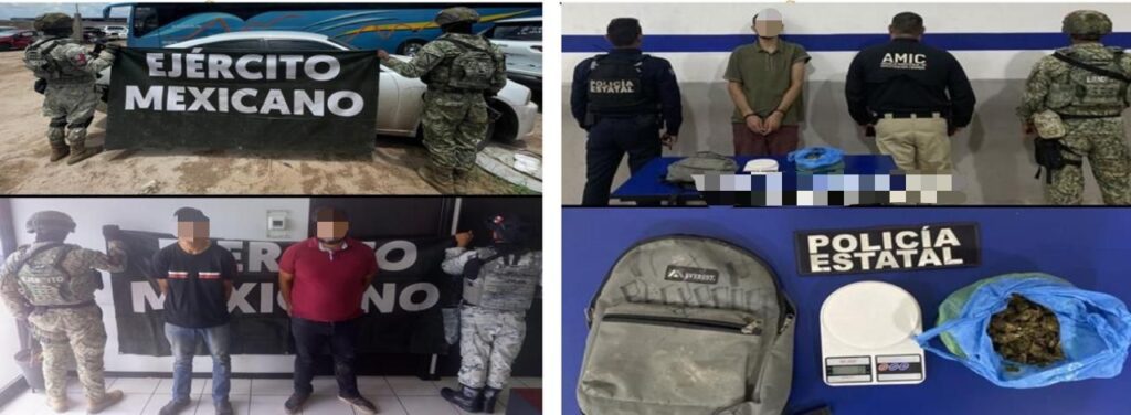 Hermosillo, Sonora; 18 de agosto de 2025.- Autoridades integrantes de la Mesa Estatal de Seguridad llevaron a cabo la detención de 130 personas y el decomiso de artefactos bélicos, droga y vehículos en distintos operativos en Navojoa, Cajeme, Hermosillo, Bácum, Agua Prieta, Nogales, San Luis Río Colorado, Caborca, Bacerac, Puerto Peñasco, Guaymas, Empalme, Yécora, Huatabampo y San Miguel de Horcasitas, del 11 al 17 de agosto.