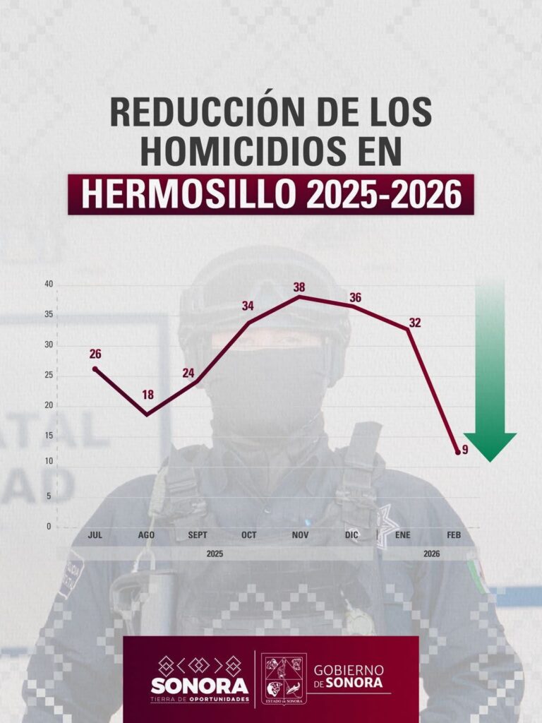 El gobernador Alfonso Durazo destacó la reducción de casos de homicidio doloso en Hermosillo, luego de que en febrero se registraran nueve casos, cifra significativamente menor en comparación con los 32 reportados en enero.