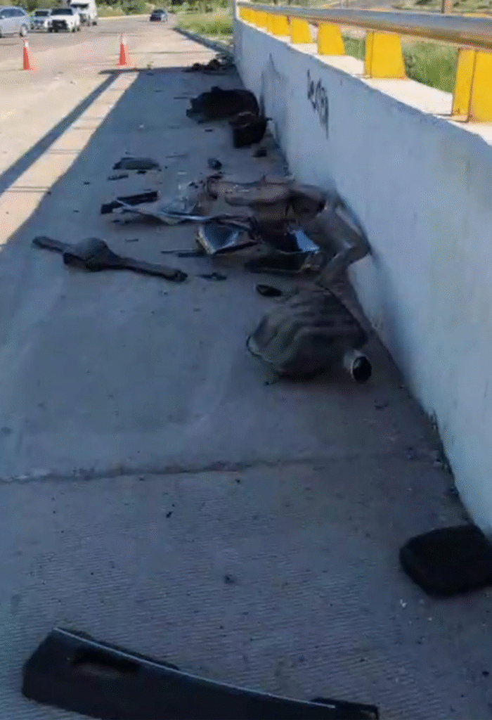 Está mañana de sábado, una unidad particular que transitaba a exceso de velocidad sobre el blvd. Morelos, de norte a sur, se impactó contra un muro de contención causando que el vehículo se partiera en dos partes, quedando la parte trasera sobre el blvd. Morelos y la parte delantera de la unidad sobre el blvd. Progreso.