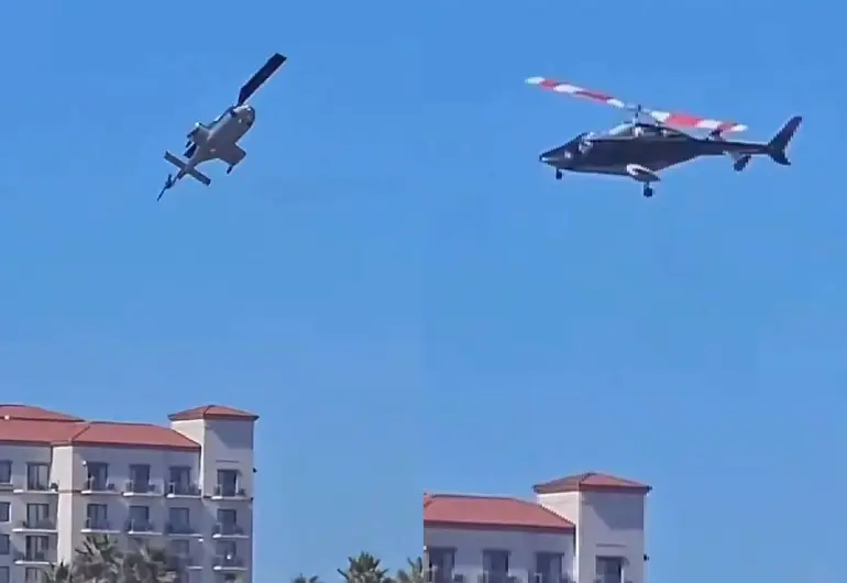 El accidente ocurrió cerca de la intersección de Pacific Coast Highway y Huntington Street, muy próximo al hotel Hyatt Regency, en un área concurrida de la ciudad costera. Los bomberos municipales informaron que rescataron a dos ocupantes del helicóptero y auxiliaron a tres peatones heridos que fueron trasladados a hospitales locales.