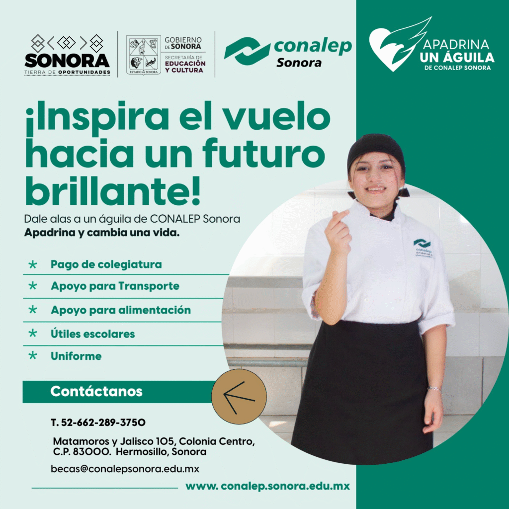Para conocer más sobre cómo formar parte de “Apadrina un Águila”, las personas interesadas pueden acercarse al plantel Conalep más cercano, consultar información a través de las redes sociales oficiales: Facebook e Instagram, así como comunicarse al teléfono 662-289-3750.