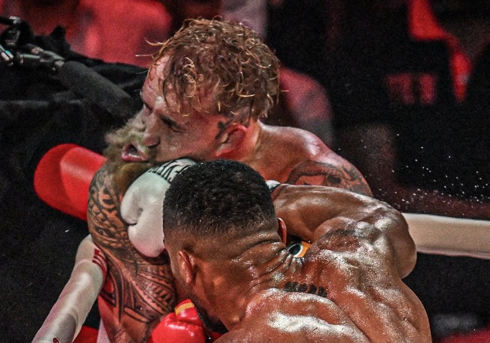 ​»Me cansé mucho, no podía aguantar su peso», señaló Paul con la boca sangrando luego de la pelea en la que soportó más de lo que expertos y aficionados esperaban.
