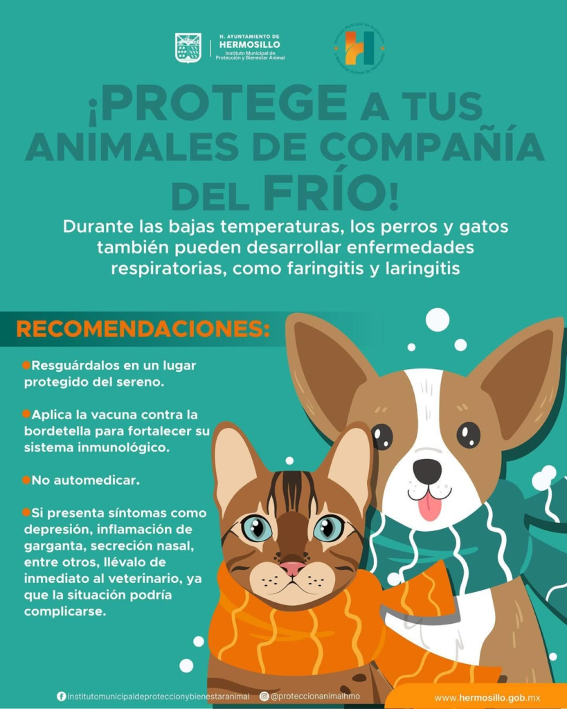 Un llamado a proteger a los animales de compañía durante la temporada invernal realizó el Instituto Municipal de Protección y Bienestar Animal, ya que pueden desarrollar enfermedades respiratorias.