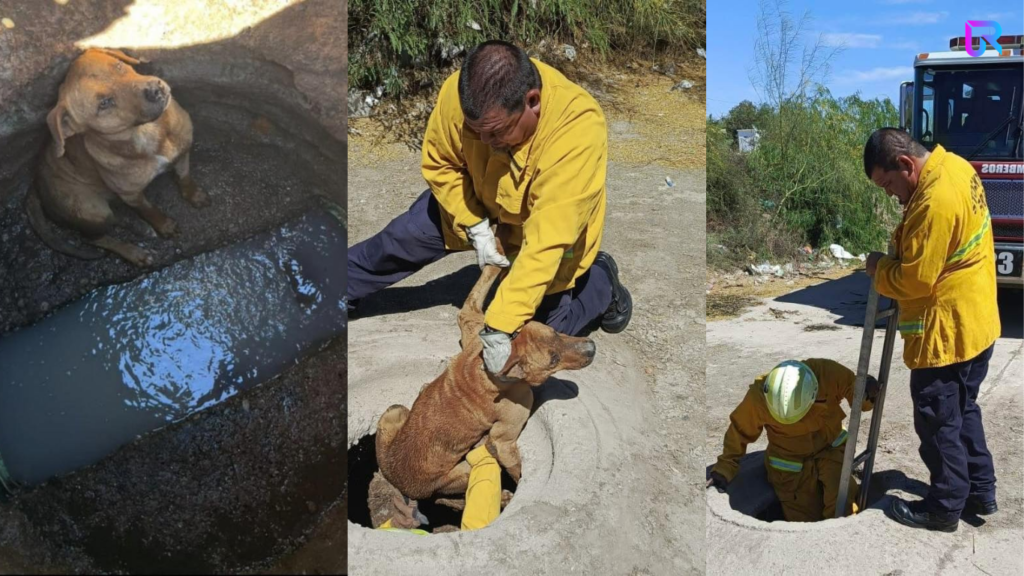 Rescatan a perro atrapado en alcantarilla en Empalme