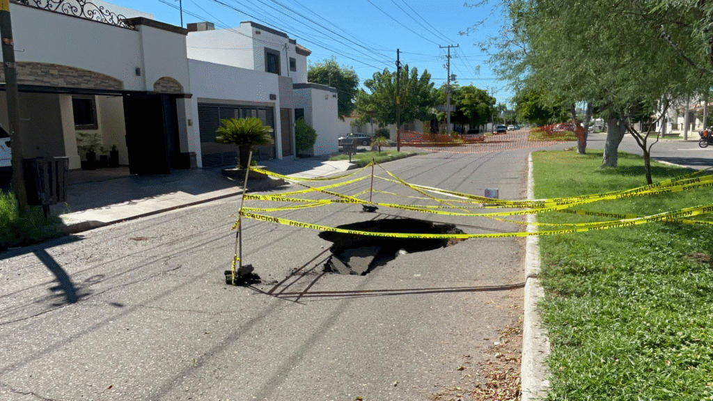 En total, son cinco socavones activos en diferentes sectores de Cajeme, cuya atención se realiza de manera prioritaria con el apoyo de cuadrillas de topografía, maquinaria pesada y equipos especializados.