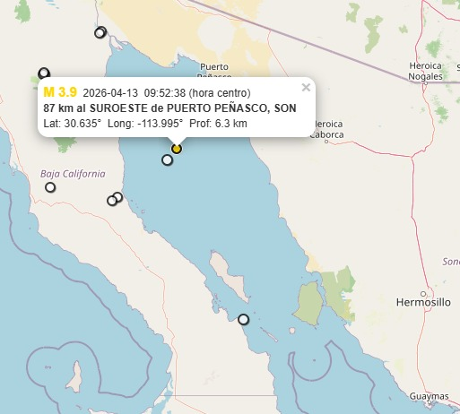 Sin daños ni reportes de haber sido percibido un sismo al suroeste de Puerto Peñasco