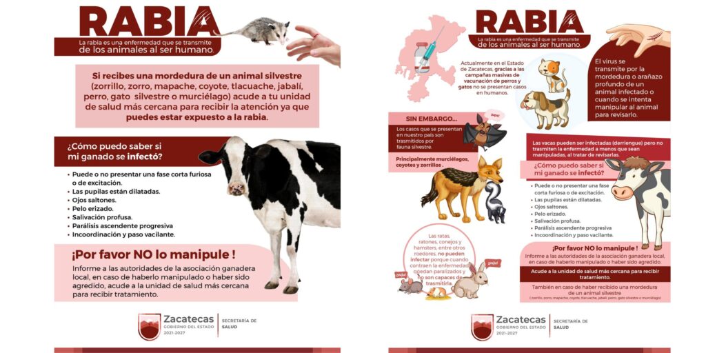 La Secretaría de Salud de Zacatecas confirmó de manera oficial este pasado viernes el diagnóstico de rabia humana en una joven de 17 años, residente de Mezquital del Oro, tras haber sido mordida por un zorrillo salvaje.