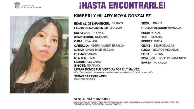 Kimberly Hilary Moya, estudiante del Colegio de Ciencias y Humanidades (CCH) Naucalpan, desapareció después de salir de su casa con destino a un café internet.