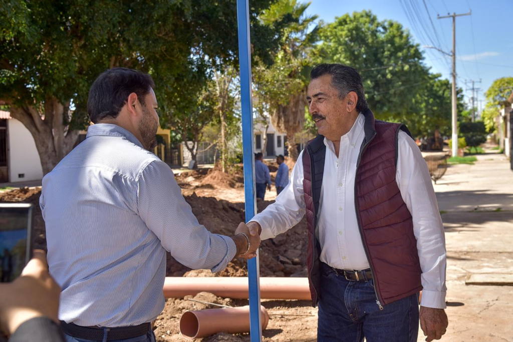 Luego, se trasladó a la calle Magnolias, entre Paseo Las Palmas y Salvatierra, así como a calle Misión de Cíbuta, entre Salvatierra y calle 400, donde, con una inversión de 9 millones 560 mil pesos, provenientes de recursos propios, superviso las obras de rehabilitación de líneas de drenaje sanitario y de agua potable, con tomas y descargas domiciliaras, construcción de pavimento, con trabajos previos de mejoramiento de terracerías, construcción de guarniciones y reposición de carpeta asfáltica en un área de 4 mil 920 metros cuadrados, es decir, 490 metros lineales de calle.