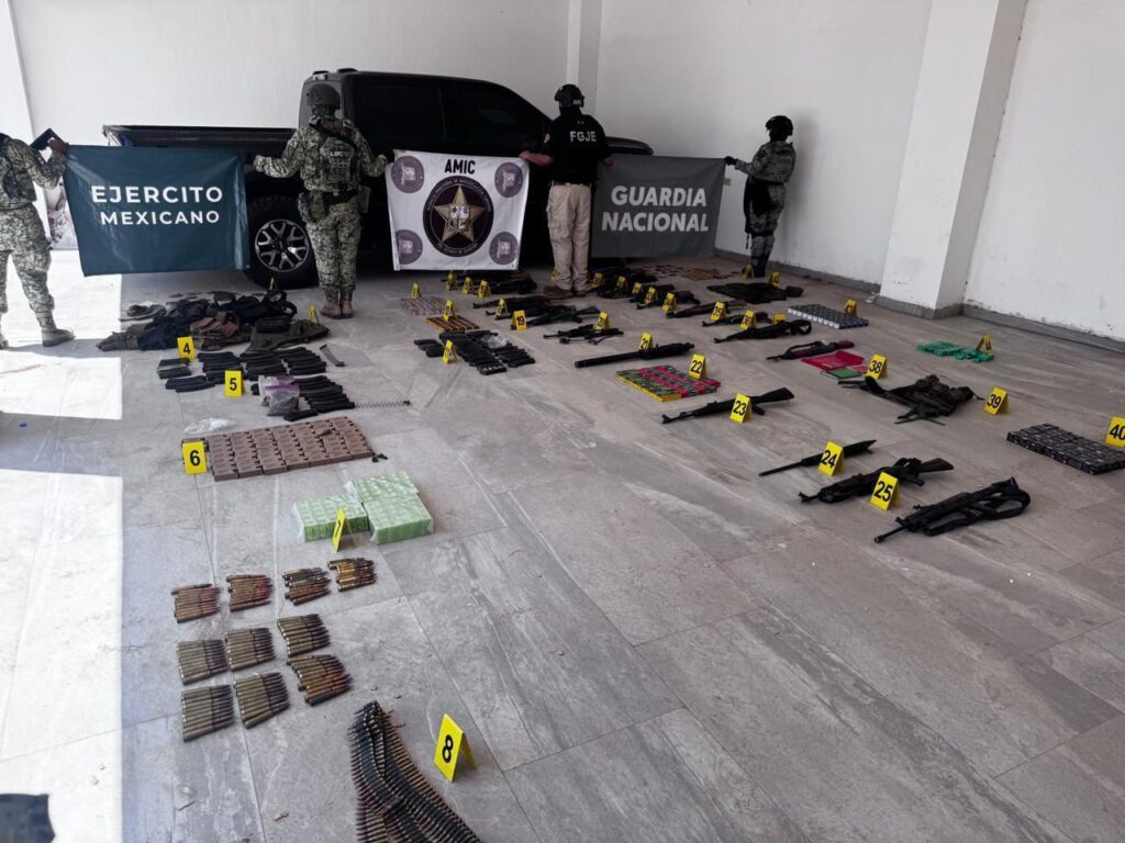 Hermosillo, Sonora; 28 de agosto de 2025.– En operativos coordinados en distintos municipios del estado, autoridades integrantes de la Mesa Estatal de Seguridad llevaron a cabo la desarticulación de una célula delictiva con la detención de 18 personas y el aseguramiento de un arsenal de armas de fuego, más de