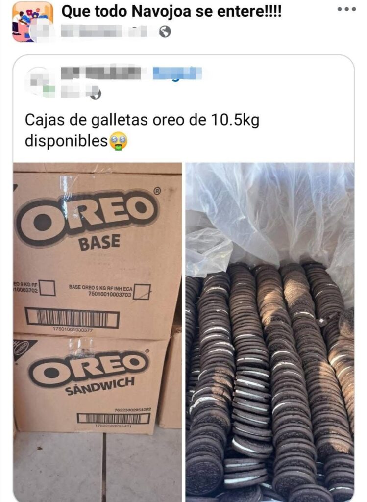 Tras el hecho, en redes sociales comenzaron a circular publicaciones donde presuntamente se ofrece la venta de las galletas a precios bajos.